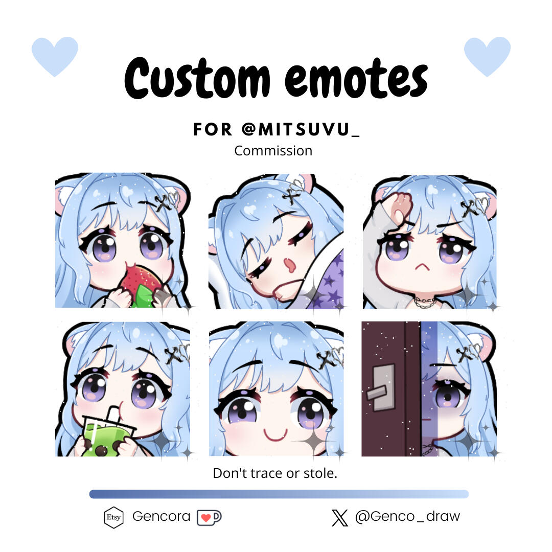 If you are interested in having personalised emotes send me a DM on my etsy store or twitter. (❁´◡`❁) Please read T.O.S before
